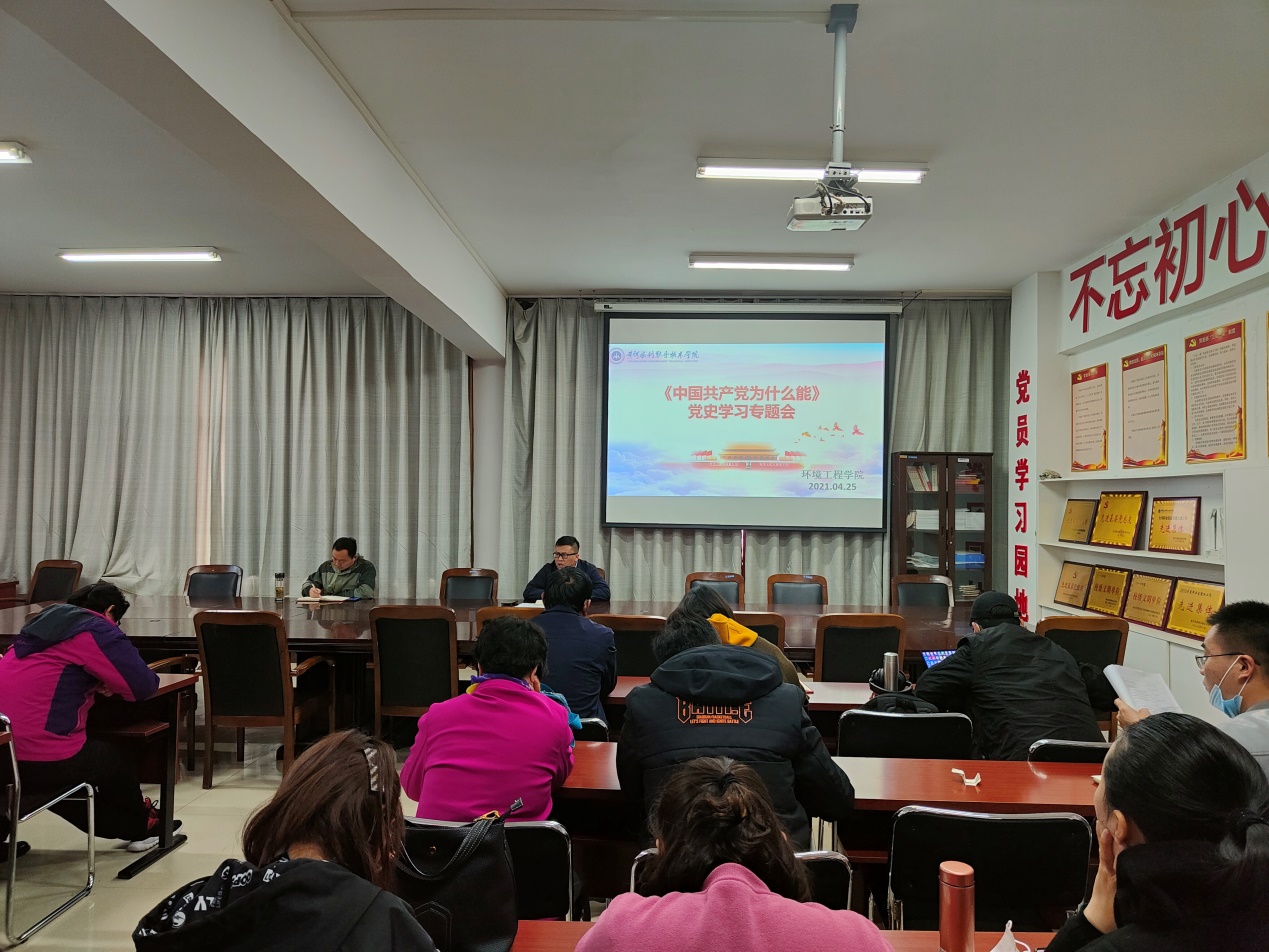 4月26日,环境工程学院召开党史教育专题学习会。全体教职工集中观看了中央党校谢春涛教授主讲的《中国共产党为什么能》党史专题讲座。
