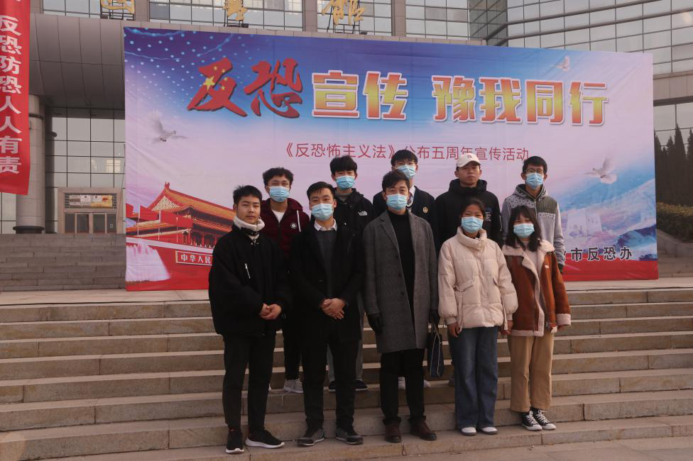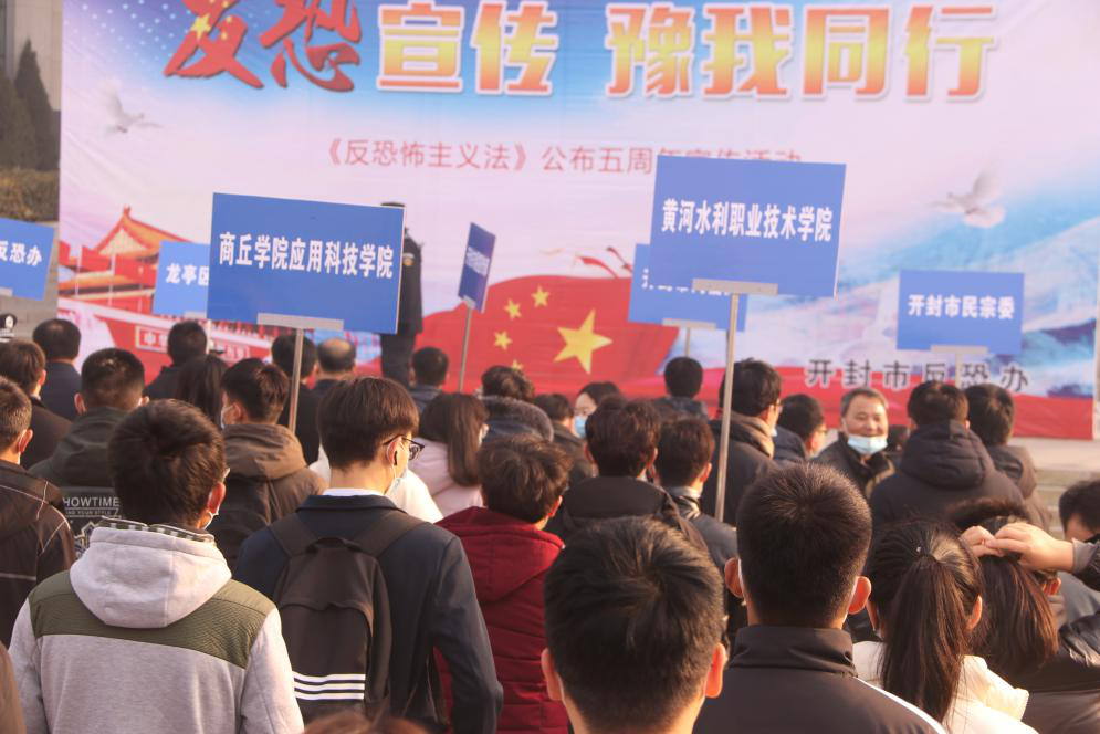 12月27日,开封市“反恐怖宣传教育进校园”活动启动仪式在河南大学金明校区图书馆广场举行,365官网保卫处人员带领水利工程学院部分师生代表参加此次活动。
