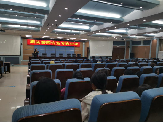 开封开元名都大酒店总经理雷爽以:“遇见酒店,其实你可以更好”为主题,向学生们介绍了优秀高端酒店的类型,通过数据对比,分析了中国和欧美不同类型酒店的比例,指出中国中高端酒店还有很大的市场空间。她激励学生们在学校一定要积极学习知识和本领,锻造自我,找到适合自己的位置,实现人生价值。