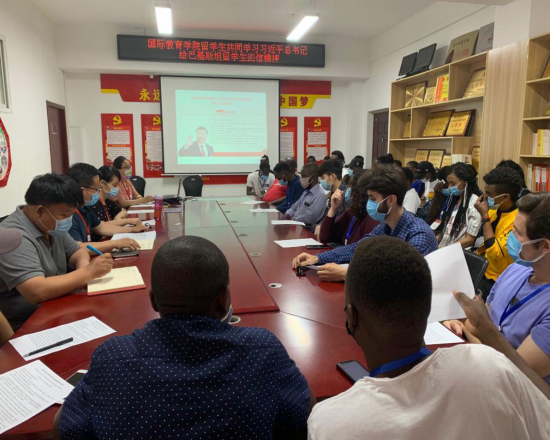 楚万强带领全体在校留学生共同学习习近平总书记写给北京科技大学全体巴基斯坦留学生的回信精神。他说,习近平总书记的回信不仅是对北京科技大学全体巴基斯坦留学生的亲切关怀和慰问,更是对广大来华留学生、广大青年的极大鼓舞和激励,对学校扎实做好疫情防控和人才培养工作有重大的指导意义,也为打赢新冠肺炎疫情防控全球阻击战注入了强大信心与力量。