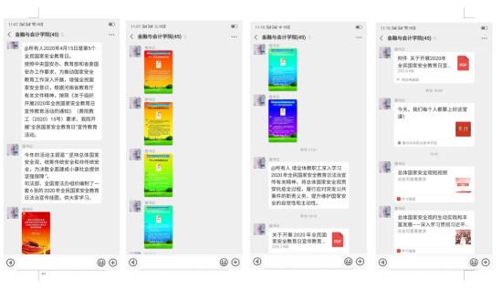 活动中,学校各部门利用职工微信群平台,深入学习了习近平总书记关于疫情防控的重要论述——《总体国家安全观的生动实践和丰富发展》及由司法部、全国普法办组织编制的2020年全民国家安全教育日法制宣传挂图等;观看学习了国家权威部门发布的《总体国家安全观》《总体国家安全观视角下的疫情防控》等重要视频资料。全校师生在线观看了中国工程院院士、公共安全领域专家范维澄主讲的“总体国家安全观视觉下的疫情防控”公开课,了解了我国总体国家安全体系、现代公共卫生安全面临的挑战风险及其应对政策措施、面对疫情大学生应该如何做等相关知识,进一步了解了疫情防控常识,增强了国家安全意识。