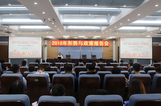 形势与政策报告会是党委宣传部与马克思主义学院联合举办的形势与政策教育系列活动之一,旨在引导师生认清国家和社会发展所处的“时”与“势”,对社会热点重点难点问题形成正确的看法,培养师生的爱国主义情怀,坚定中国特色社会主义道路自信、理论自信、制度自信、文化自信。(摄影:党委宣传部