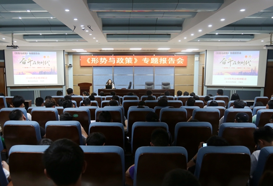 形势与政策报告会是党委宣传部与思想政治理论教学部联合举办的形势与政策教育系列活动之一,旨在引导师生认清国家和社会发展所处的“时”与“势”,对社会热点重点难点问题形成正确的看法,培养师生的爱国主义情怀,坚定中国特色社会主义道路自信、理论自信、制度自信、文化自信。(摄影:党委宣传部 袁洪博)
