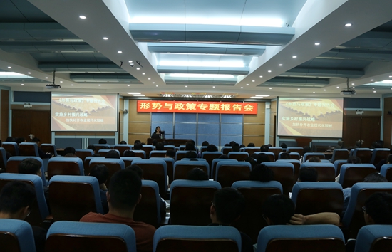 4月25日下午,365官网在3号实训馆学术报告厅举行了以“实施乡村振兴战略,加快补齐农业现代化短板”为主题的形势与政策专题报告会,近200位师生代表聆听了报告。365官网思政部形势与政策教研室朱玮教师为报告会主讲人。