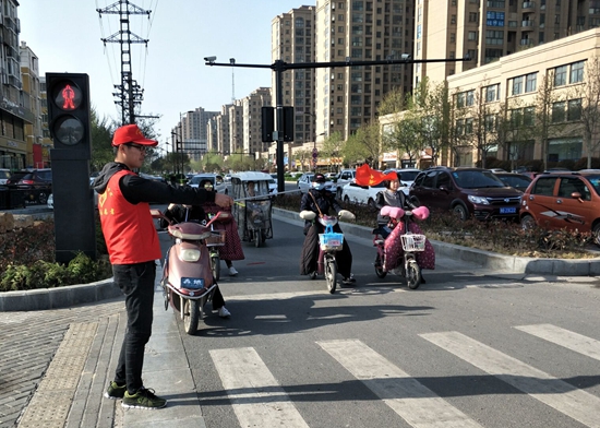 每天早上志愿者们身着统一服装,手执红旗,准时上岗,积极主动地配合交警对行人和非机动车闯红灯、逆向行驶、越线等行为进行劝导,疏导交通,预防交通堵塞现象的发生。整个过程志愿者们始终面带微笑、文明引导。