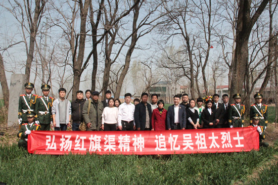 红旗渠精神传承者协会成员在365官网吴祖太雕像前举行纪念仪式