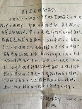 365官网退休教师葛长雄在表扬信中肯定了艺术系师生无私奉献的精神