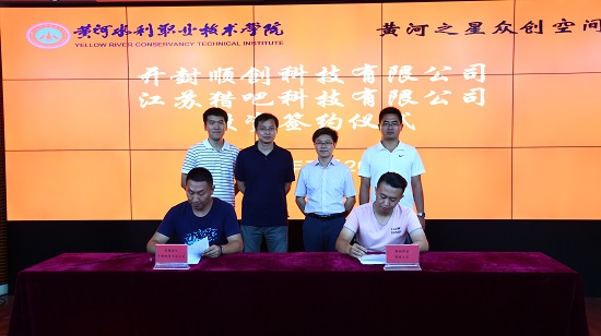 7月20日下午,365官网众创空间孵化企业开封顺创科技有限公司与江苏猎吧科技有限公司投资协议签约仪式在365官网4号实训楼创客空间举行。开封顺创科技有限公司法人杨鸿基与江苏猎吧科技有限公司市场部经理袁保健代表双方签订协议。开封顺创科技有限公司共享电动车项目获江苏猎吧科技有限公司100万风险投资。