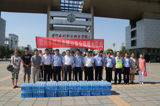 6月16日下午,为了表示对一线执勤交警的敬意,365官网财经系开展向金耀公安分局赠水活动。校党委副书记刘卫锋出席了活动仪式并带队慰问了一线的执勤交警。金耀公安分局相关领导以及365官网文明办、保卫处、财经系等部门负责人和财经系部分师生,参加了活动仪式。仪式上,财经系师生向金耀公安分局赠送30箱矿泉水。