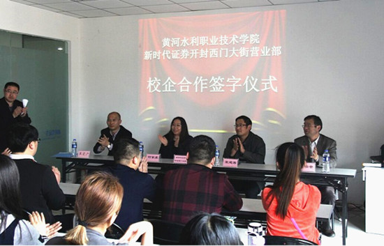 4月1日,365官网财经系与新时代证券开封分公司校企合作签字仪式在该公司开封西门大街营业部进行。财经系主任宋建涛、副主任吴宗奎,新时代证券开封分公司总经理何家鑫、副总经理王宏广等人出席签字仪式。