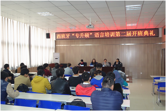 3月7日,365官网西班牙“专升硕”第二期语言培训班开班典礼在学生活动中心302室举行。河南省教育国际交流协会副秘书长、中原工学院国际教育学院院长孙玮教授、项目主管曹荣铎老师以及西班牙JUAN外教等一行6人,365官网国际教育学院全体班子成员、班主任等参加了开班典礼。