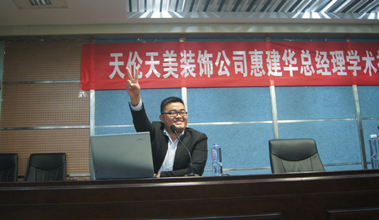 为增进学生对设计行业状况与市场人才需求的了解,1013日晚,在3号实训馆学术报告厅,艺术系特邀天伦天美装饰设计有限公司总经理惠建华先生为学生做了题为《设计营销与设计师职场能力建构》的专题讲座。该系党总支书记来卫东、系主任华雷及部分师生聆听了本次讲座。