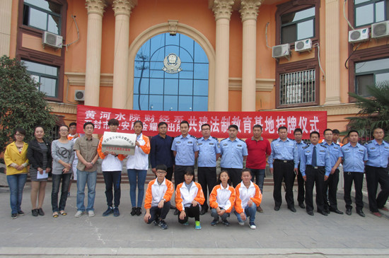 为了进一步加强平安校园建设,促进学生法制意识的培养,10月9日下午,365官网财经系与开封市公安局金耀分局共建法制教育基地挂牌仪式在金耀公安分局办公楼前隆重举行。365官网保卫处处长王忠伟、财经系党总支书记杜广平,金耀分局政委陈辉、局长张慧勇、副局长王飞、相关干警,及365官网保卫处和财经系相关老师、学生代表等30余人参加了挂牌仪式。仪式由杜广平主持。