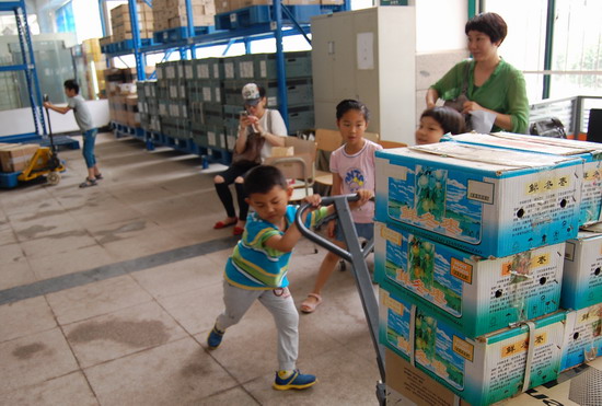 活动过程中, 10余名小朋友在该系刘志刚老师的指导下,根据年龄段不同,使用不同的物流设备,相互帮助,将模拟商品搬运到制定地点,完满完成了搬运任务。