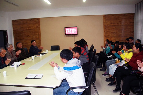 11月11日下午,院关工委黄新、白济民、葛长雄、孙义全等一行4人在艺术系会议室(SY5616)开展以“深入贯彻学习党的十八届四中全会精神”为主题的宣讲报告活动。艺术系主任华雷、行政办公室主任周洪军及该系优秀学生代表27人参加了报告会。
