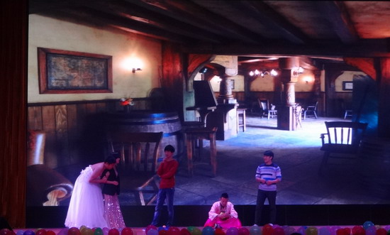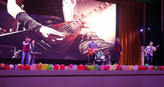 晚会现场彩光闪耀,节目精彩纷呈。由我院“音缘”吉他协会C-5乐队带来的魅力四射的开场表演,点燃了全场观众的激情,台上美丽姑娘动感的舞姿、欢快的节奏,台下飞舞的荧光棒、热烈的掌声,欢乐的氛围瞬间弥漫了整个大厅,一曲《等待》展现了演唱者极具实力的歌喉,话剧《白雪公主和三个小矮人的故事》的演员们有趣的打扮、无厘头的表演、搞笑幽默的对白逗得全场观众捧腹大笑、掌声迭起,由院工会美女教师组成的模特队气质优雅,表现了新时代的教师风貌。