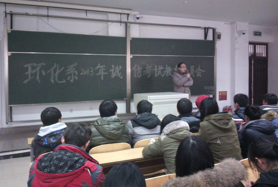 为进一步加强环化系学风建设和诚信教育,严肃考风考纪,营造公平、公正的考试氛围,12月24日中午,分别在JX6202、JX6302教室召开“环化系2013年诚信考试教育动员大会”,党总支书记周志琦、主任李党生、副书记王振强以及副主任朱惠斌出席会议并讲话,2012级、2013级辅导员老师和490余名学生参加了动员大会。