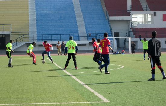 近日,在水利系、体育部的联合组织下,一场多国、多校师生参加的足球友谊盛宴在我院祥云体育场举行。参赛人员有我院赤道几内亚留学生、印度尼西亚留学生、我院英国外教James,河南大学非洲留学生以及开封市业余联赛冠军大拇哥足球队。