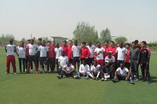 4月13日,我院非洲班留学生队对战外来的汴梁草根队,汴梁草根队是开封市业余足球联赛亚军。学院领导高度重视,体育部和水利系认真组织。