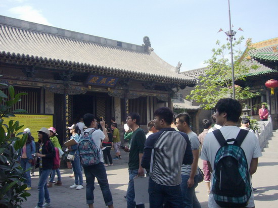 学生在对建筑群进行参观考察
