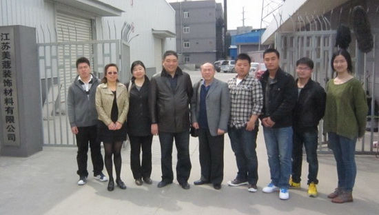 江苏美蔻装饰材料有限公司是一家专业从事壁纸设计、研发、生产、和销售的高新技术企业,在公司会议室,两位老师和顶岗实习学生与白燕总经理进行了深入交流。陈豫老师首先介绍了此次访行的目的,白总介绍了公司业务情况。现在国内壁纸行业迅猛发展,但全国还没有一家艺术院校开设壁纸设计专业,目前,此行业对壁纸设计专业的学生有很大的需求量,白总希望能与我们进行专业合作培养,两位老师与白总对专业建设及发展方向、校企合作等相关事宜进行了深入的交谈,双方在课程建设及校企合作模式等方面达成了诸多共识,初步达成了企业订单培养、教师挂职锻炼、学生实习就业、共建实习基地等多种形式的校企合作,为艺术系视觉传达专业的进一步发展提供了更多的就业保障。