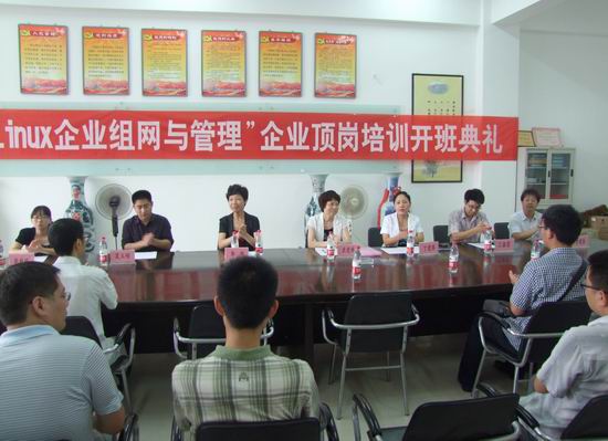 为进一步加强高等职业院校教师队伍建设,河南省近期启动了《河南省高等职业院校教师素质提高计划》。我院信息工程系与河南精华科技有限公司合作申办了为期8周的“Linux企业组网与管理”企业顶岗培训项目。经过前期诸多准备工作,7月9日上午,培训班正式开班,教务处处长焦爱萍、河南精华科技有限公司总经理郭陶、信息工程系主任丁爱萍、副主任吕振雷等参加开班仪式。