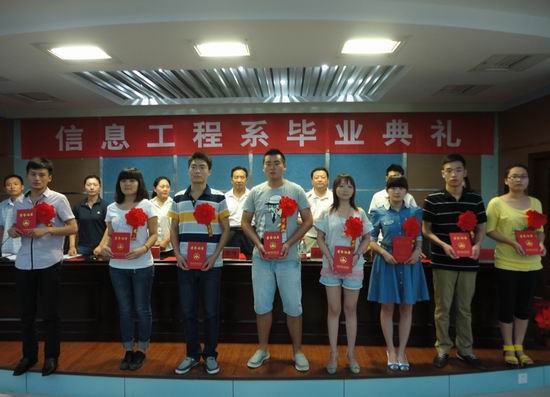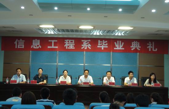 6月15日下午,信息工程系在3号实训馆学术报告厅举行了2012届学生毕业典礼暨优秀毕业生表彰大会。原系党总支书记何聚坤、现任党总支书记刘岩、副书记殷莺、主任丁爱萍、副主任吕振雷等出席典礼,共同见证了2012届学生顺利完成学业,即将翻开人生新的篇章这一美好而幸福的时刻。典礼由辅导员魏增辉主持。
