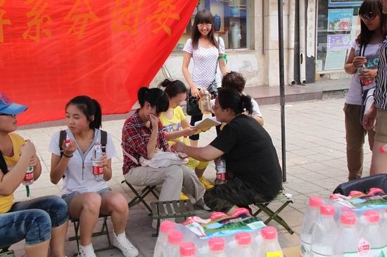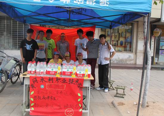 在旅游系分团委的号召下,30多名学生自发组成的“爱心志愿者服务队”,顶着烈日在高考考场开封市第五中学的门口设立帐篷,为参加高考的学生和家长免费提供应急药品、纯净水、坐垫、报纸等物品,并专门为考生家长准备了“爱心提示卡”,帮助考生和家长注意考试事项,以最佳的状态迎接考试。