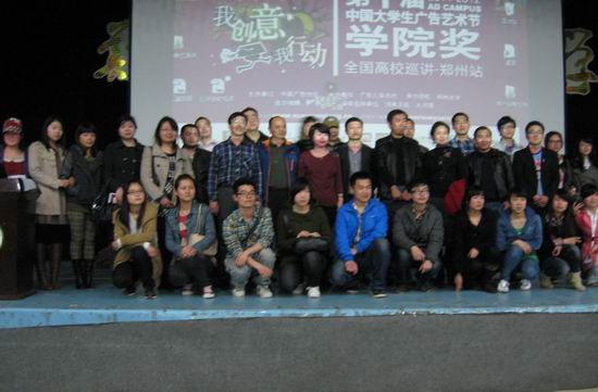 3月27日,春暖花开,天气晴朗舒适,艺术系视觉传达教研室由陈豫老师带队集体参加了第十届中国大学生广告艺术节学院奖全国巡讲•郑州站的活动。