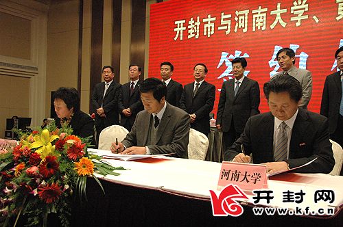 祁金立说,开封市与河南大学、黄河水院人才合作会议,是我市经济社会发展中的一件大事,对于促进开封经济社会科学发展、快速发展必将产生重要而深远的影响。开封是七朝古都,全国首批历史文化名城,也是中原经济区建设的核心城市和郑汴一体化的重要一翼。特别是2011年开封市十次党代会召开以来,全市上下正全力打好“五大攻坚战”,努力推动开封快速崛起,实现这个宏伟目标,归根结底,离不开人才这个重大支撑和有力保障。高校在高端人才聚集、产业发展聚集、提升区域创新能力、促进区域经济社会发展方面作用独特,这次开封市与河南大学、黄河水院签订人才合作框架协议,就是要进一步加强本地高校的联系,充分发挥高校在科研教学、人才智力上的优势,助推开封经济社会发展。通过双方的共同努力,最终形成高校为我市经济社会发展提供人才智力支持,我市为高校提供优惠政策、科研课题、实训基地等良性合作机制,推动双方共同发展。