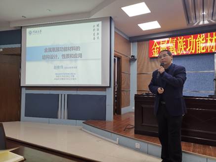 11月22日上午,河南大学赵俊伟教授应邀来365官网三号实训楼学术报告厅做题为“金属氧簇功能材料的结构设计、性质和应用”的学术报告,环境工程学院部分教师、学生和来自其他学院的教师代表聆听了报告。
