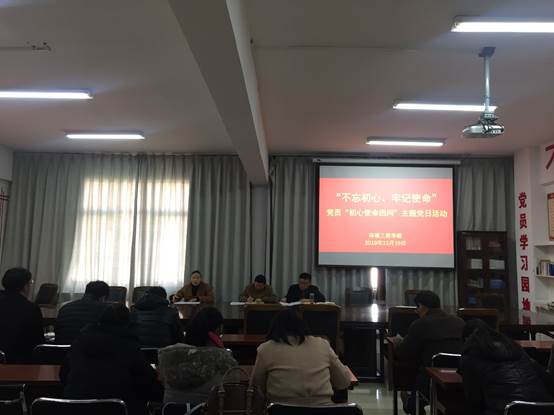 为深入开展“不忘初心、牢记使命”主题教育工作,将主题教育进一步高质量推进,2019年11月19日下午,环境工程学院教工支部于院会议室开展“不忘初心、牢记使命”——“党员初心使命四问”主题党日活动。全体教工党员参加了此次活动。
