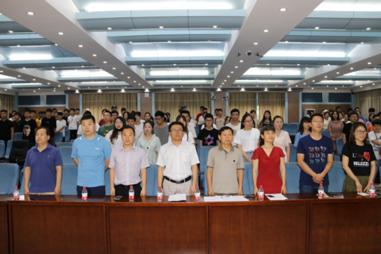 6月4日下午16:30,环境工程学院2019届毕业典礼在学术报告厅SY3301隆重举行。2019届全体毕业生汇聚于此,共同见证和分享一生中极其庄严而神圣的时刻——毕业盛典。环境工程学院党总支书记王国英、副院长张尧旺、党总支副书记曾宝亭、副院长王振伟,以及专业课教师代表出席典礼,毕业典礼由2016级辅导员王恺主持。