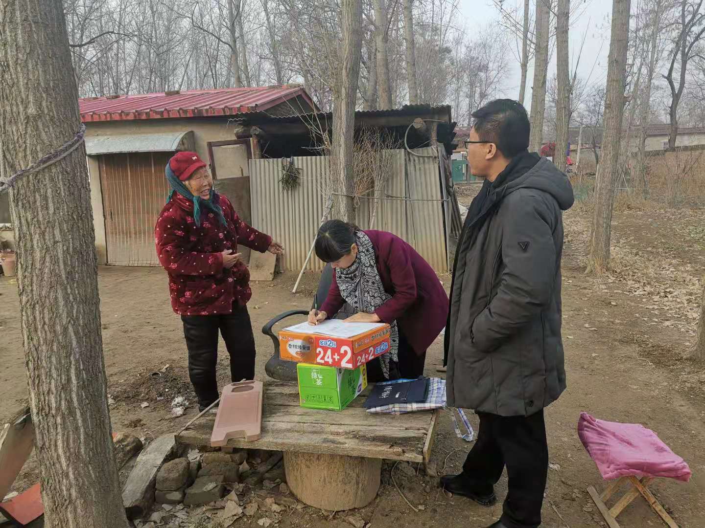 帮扶小组走访了对接帮扶困难户李秀花、郭永庆,宣传落实国家扶贫政策,填写《帮扶对象明白卡》,并送去了慰问品。帮扶小组问李秀花老人还记得我们吗,老人家说:“咋不记得呢?恁经常来看我。”临别时帮扶小组一再叮嘱老人家天冷了注意保暖出门要戴帽子,老人家站在门口看着帮扶小组渐渐走远才回屋。帮扶小组又来到帮扶对接户郭永庆家,他一个劲地说谢谢!国家扶贫政策好,黄河水院帮扶好,日子过得越来越好。