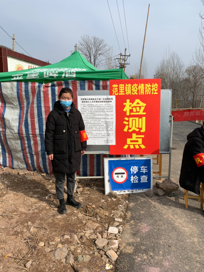 预备党员杨琼(食品安全1701班)在家乡疫情防控点执勤