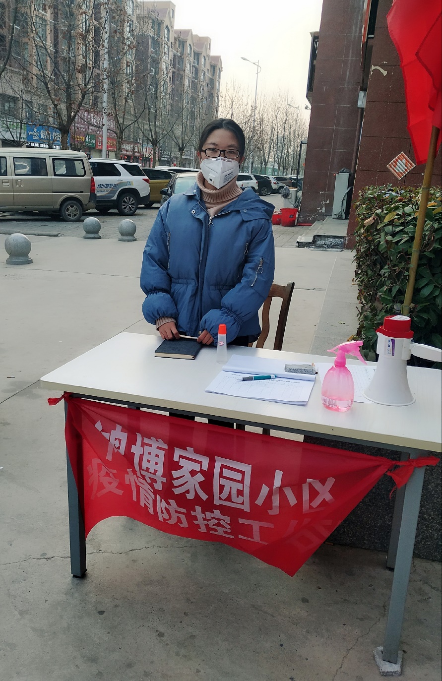 预备党员李欣颖(食品安全1802班)在社区出入口执勤