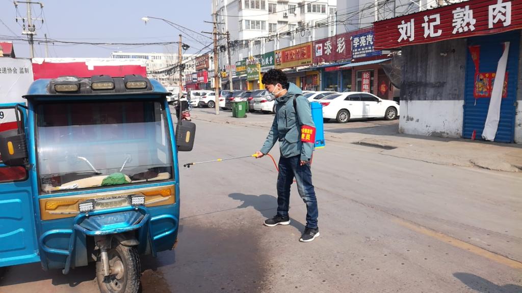 朱家奇,环境工程学院材料工程技术1701班学生, 他是八里营村疫情防控战线的一名志愿者,朱家奇同学每天的任务就是配合卡点人员给过往的车辆喷洒消毒液,给骑电动车和自行车的人员喷洒酒精消毒,以及检查过往行人的出行证件,认真给过往车辆和行人做好排查和消毒工作,到村中和社区等地为群众发放倡议书、防控指南等宣传资料,讲解新型冠状病毒感染的肺炎防控相关知识,倡导居民们要自觉遵守疫情防控工作要求,加强个人防护。