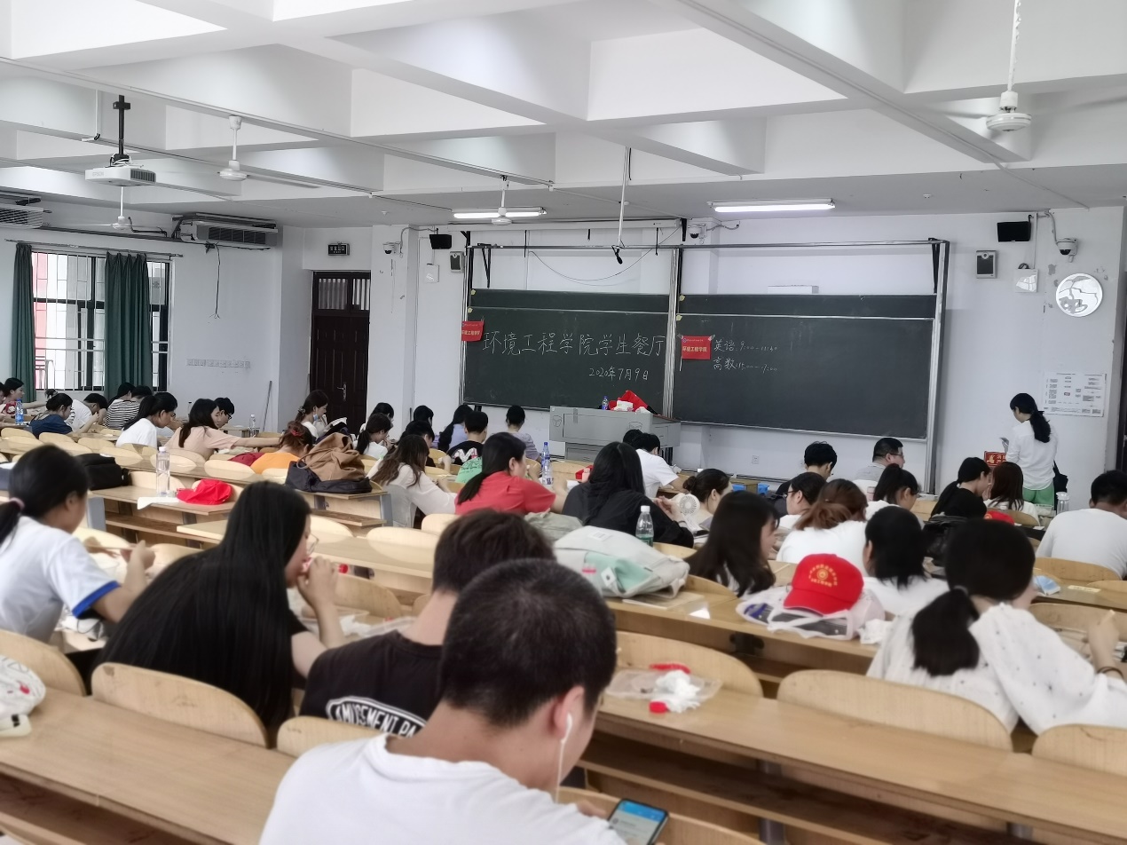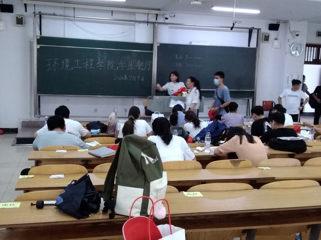 6:30时,学院党总支副书记曾宝亭带领辅导员王恺、马琳娜来到学生宿舍楼组织学生前往食堂就餐。7:30时,王恺带领学生们乘坐学生工作部统一组织的大巴车准时出发,奔赴考场。12:20时,学生们乘坐大巴车从考场返回学校,一下车就直奔环境工程学院学生餐厅——教学楼6202教室用餐。当学生们从大汗淋漓的老师们手里接过午餐时,千言万语化为一句朴实的“谢谢老师!”。13:20时,大巴车载着学生们继续奔赴考场,当看到学生们隔着车窗频频挥手时,在场的老师们顿觉甜蜜如泉涌。