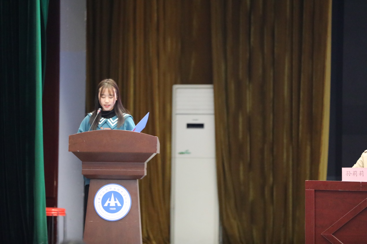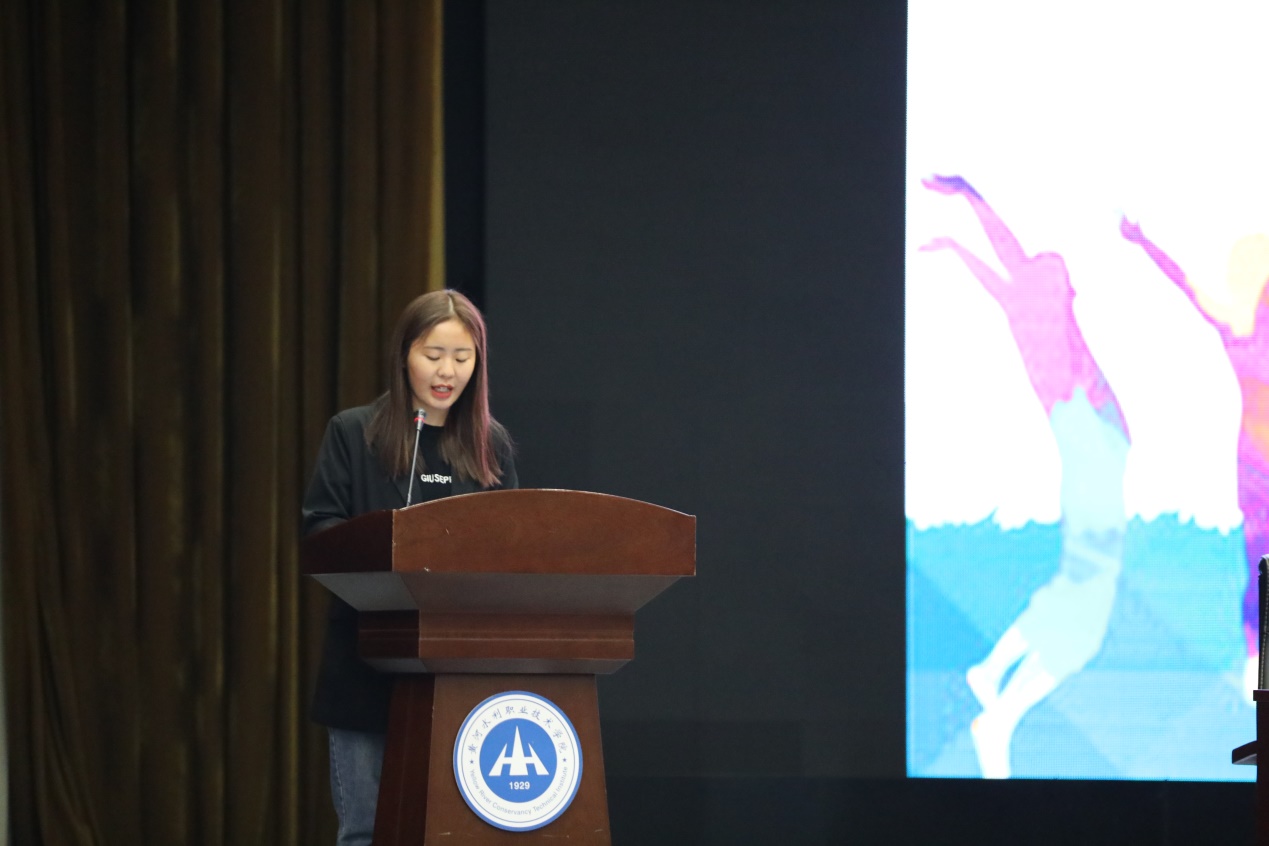 食品加工技术1901班贺艳婷作为老生代表发言,寄语2020级学弟学妹,分享自己的经验和心得。