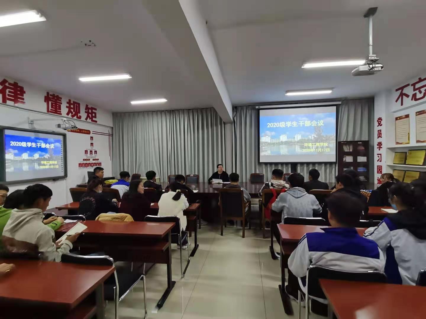 2020年11月17日晚上,环境工程学院在学院会议室SY5405召开20级新生学生干部会议。大会由学院20级辅导员王恺老师主持,全体班级学生干部参加了会议。