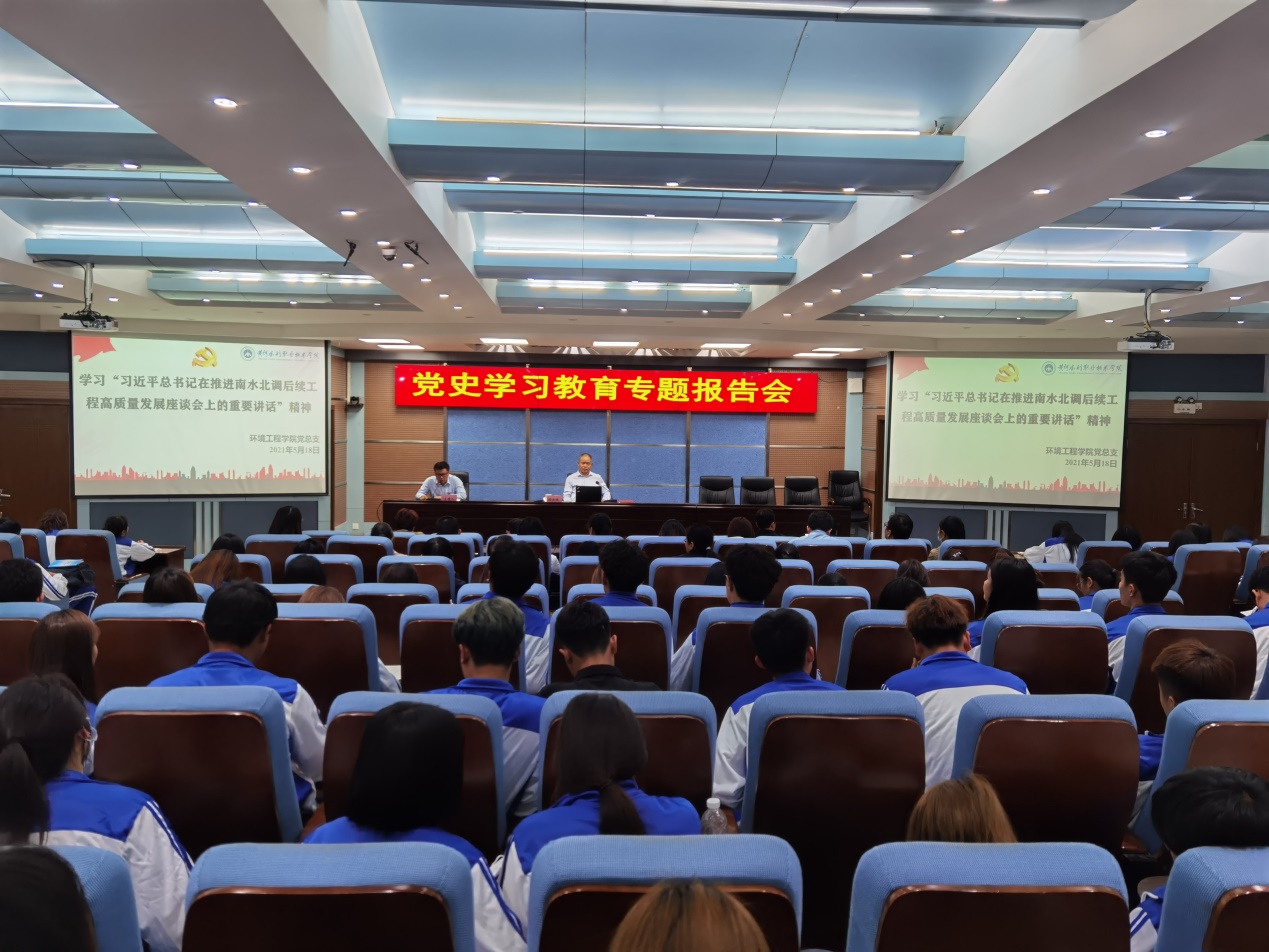 5月14日上午,中共中央总书记、国家主席、中央军委主席习近平在河南省南阳市主持召开推进南水北调后续工程高质量发展座谈会并发表重要讲话。5月18日下午,环境工程学院党总支开展主题党日活动,邀请副校长杨士恒教授领学习近平总书记在推进南水北调后续工程高质量发展座谈会上的重要讲话精神。