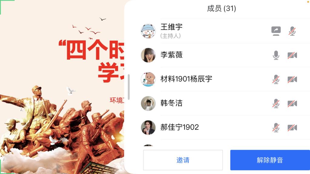 7月18日晚,环境工程学院学生环境工程支部在腾讯会议召开线上“四个时期”党史专题学习交流会,支部全体党员、预备党员参加了本次会议,会议由学生支部党员教师王维宇主持。