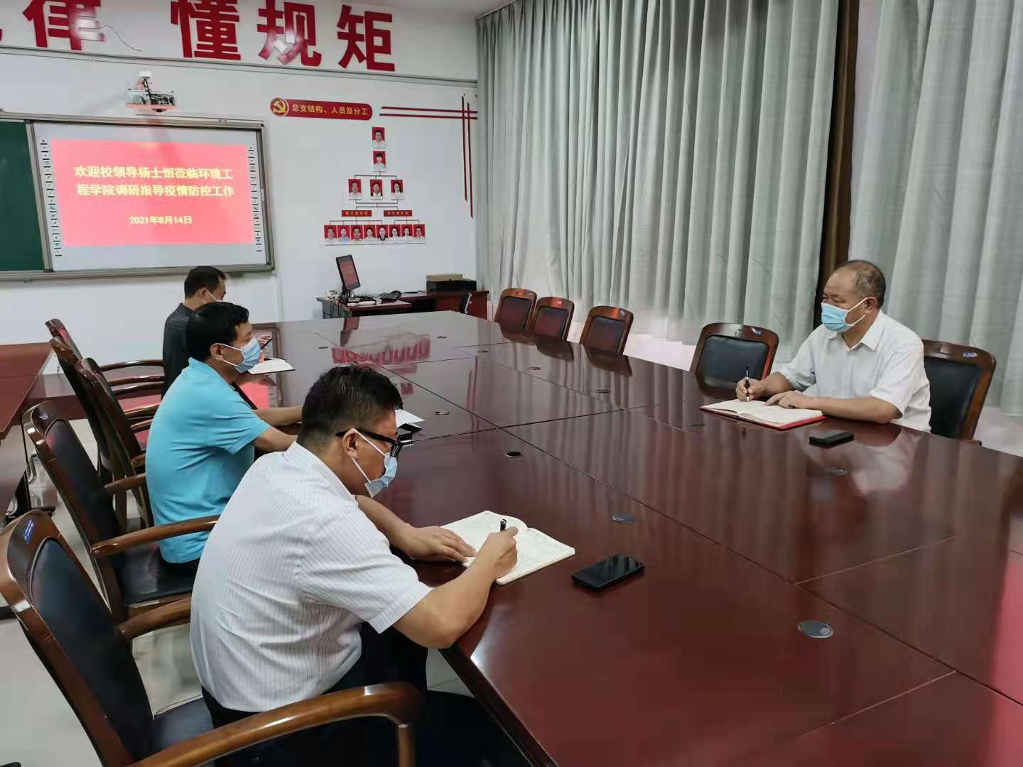 8月14日上午,校领导杨士恒莅临环境工程学院调研指导疫情防控工作。环境工程学院党总支书记王国英、副院长张尧旺(主持工作)、王振伟及校企合作办主任王恺参加了座谈会。