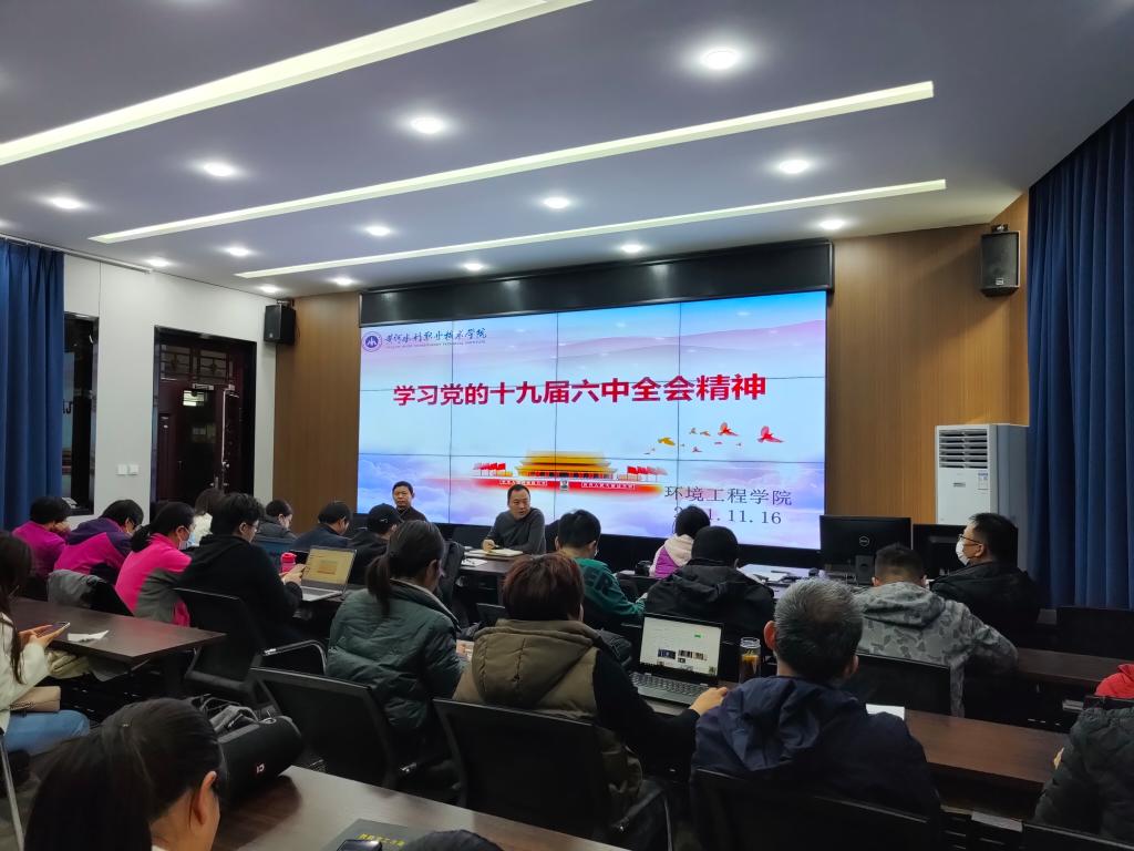 2021年11月16日,环境工程学院在8号实训馆二楼西厅会议室开展关于“学习党的十九届六中全会精神”专题学习活动,会议由环境工程学院副院长王振伟主持,全体教职工参加了此次专题学习。