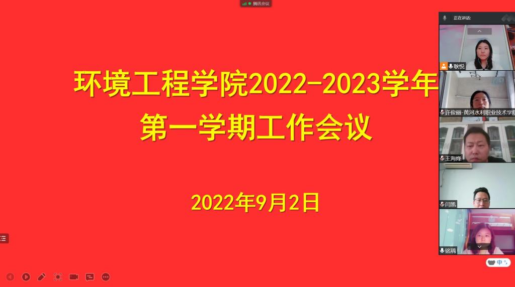 为进一步安排部署新学期各项重点工作,做好新学期教学运行和期初教学检查工作,9月2日下午,环境工程学院通过线上方式召开2022-2023学年第一学期工作会议。环境工程学院党总支书记高琼、院长冯峰、党总支副书记陶攀、副院长姚新鼎及全体教师参加会议,会议由副院长姚新鼎主持。