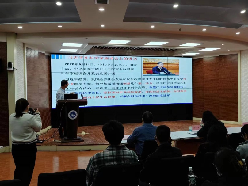 环境工程学院党总支书记高琼作总结发言。她高度评价了张教授的报告,认为这次报告会是一堂别开生面的思政课,让我们近距离地聆听大科学家的故事,体会他们攻坚克难、敢于创新、无私奉献的事迹,真正用实际行动向我们阐释了科学家精神的深刻内涵。