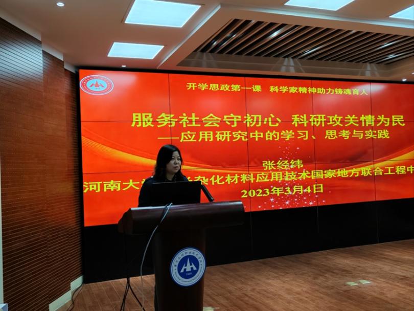 为全面推进课程思政建设,不断提高人才培养质量,帮助青年教师和大学生树立勇于创新、甘于奉献的敬业精神,3月4日,环境工程学院特邀河南大学纳米杂化材料国家地方联合工程技术研究中心常务副主任张经纬教授为全院师生做“开学思政第一课·科学家精神助力铸魂育人”主题报告。环境工程学院党总支书记高琼、院长冯峰、副院长姚新鼎以及部分师生代表参加会议,报告会由党总支书记高琼主持。