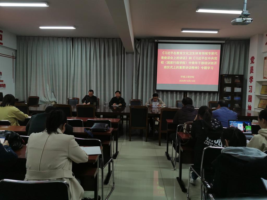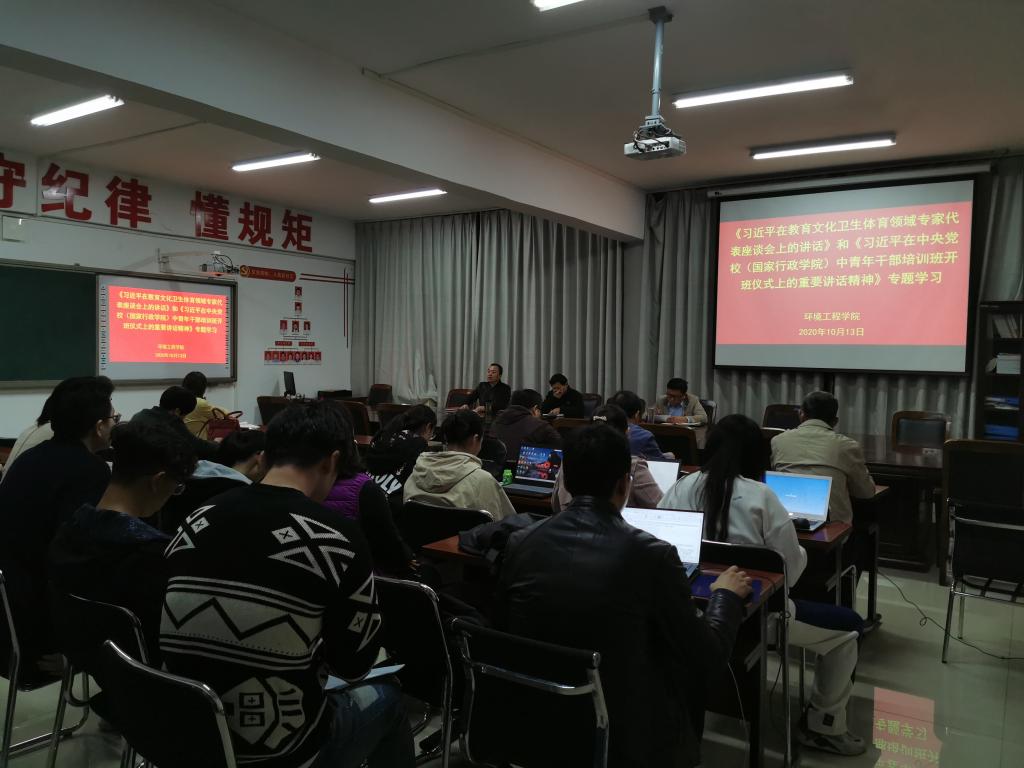 10月13日下午,环境工程学院召开《习近平在教育文化卫生体育领域专家代表座谈会上的讲话》和《习近平在中央党校(国家行政学院)中青年干部培训班开班式上的重要讲话》精神专题学习会。会议由教工支部书记王振伟主持,全体教职工参加了此次会议。