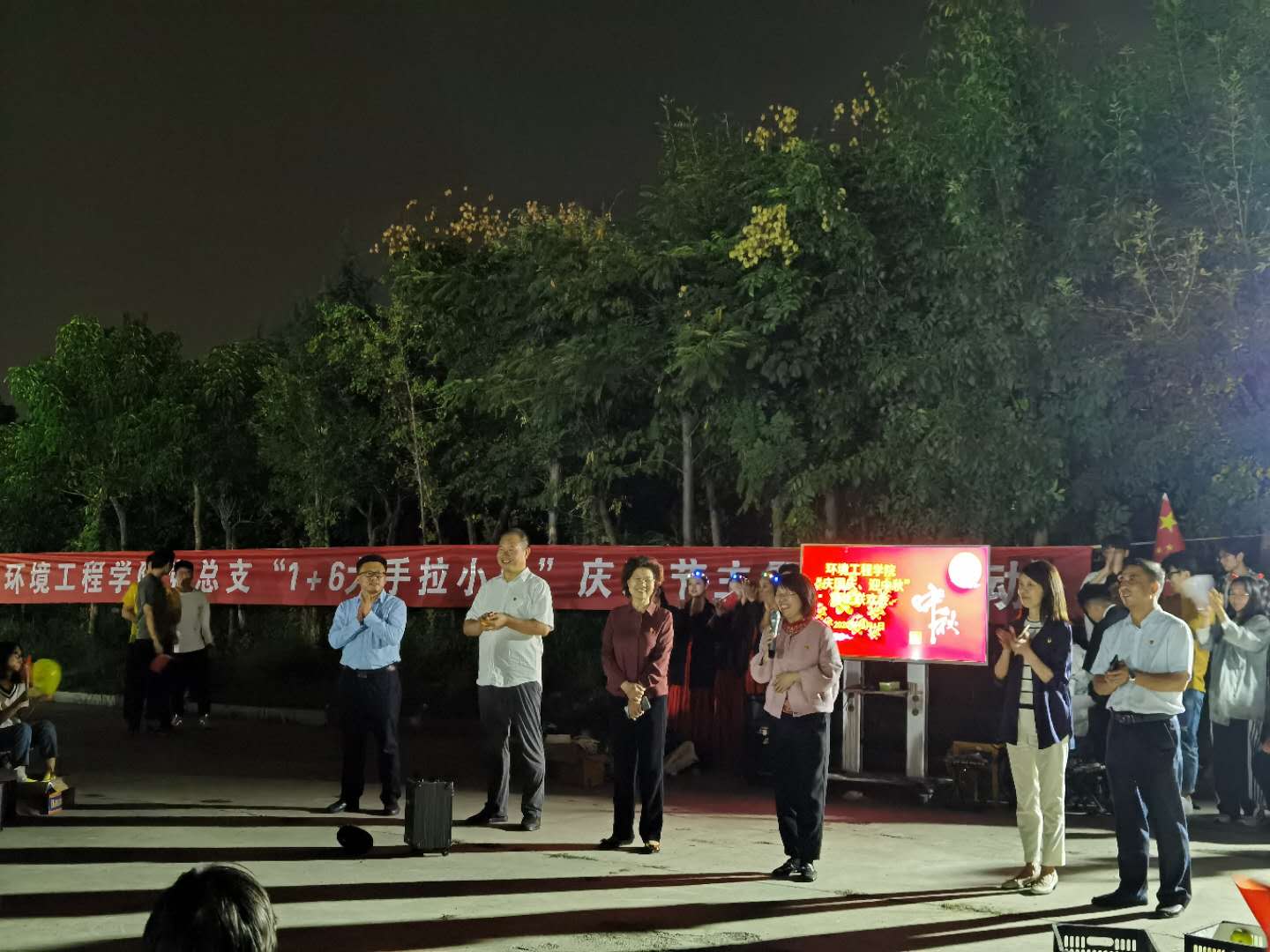 晚上在祥云体育场外广场上,举办了“庆国庆、迎中秋”联欢会,学院领导班子成员、分团委书记、党员教师、辅导员、全体在校生参加了联欢会。老师与同学们纷纷表演节目,共赏明月,共度美好夜晚。