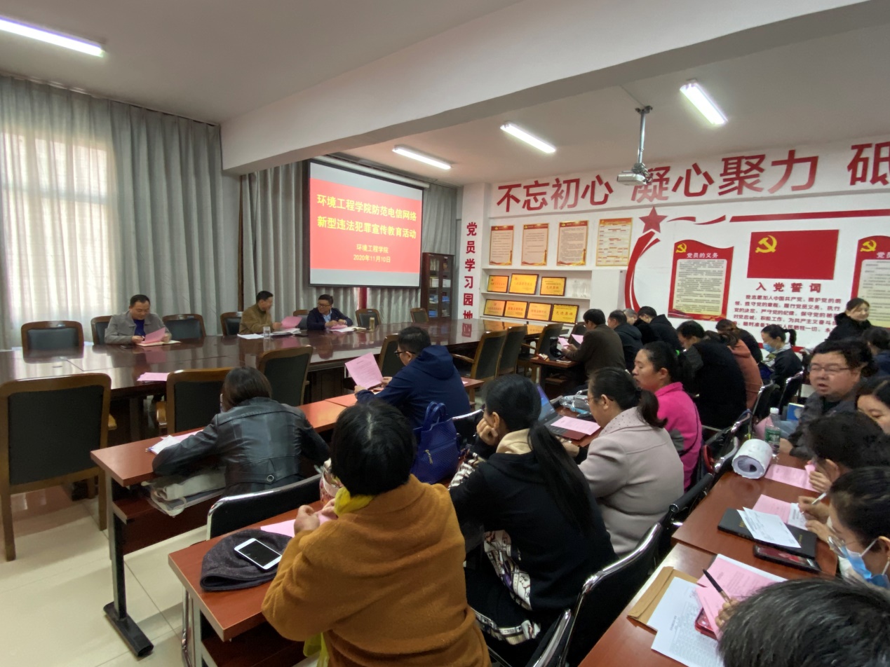 按照河南省打击治理电信网络新型违法犯罪工作厅际联席会议办公室《关于组织开展防范电信网络新型违法犯罪集中宣传月活动的通知》要求,大力加强防范电信网络新型违法犯罪宣传工作,提高师生的防范意识贺防范能力 、减少高校电信网络案发事件,环境工程学院于2020年11月10日对全体教职工开展防范电信网络新型违法犯罪宣传教育活动。